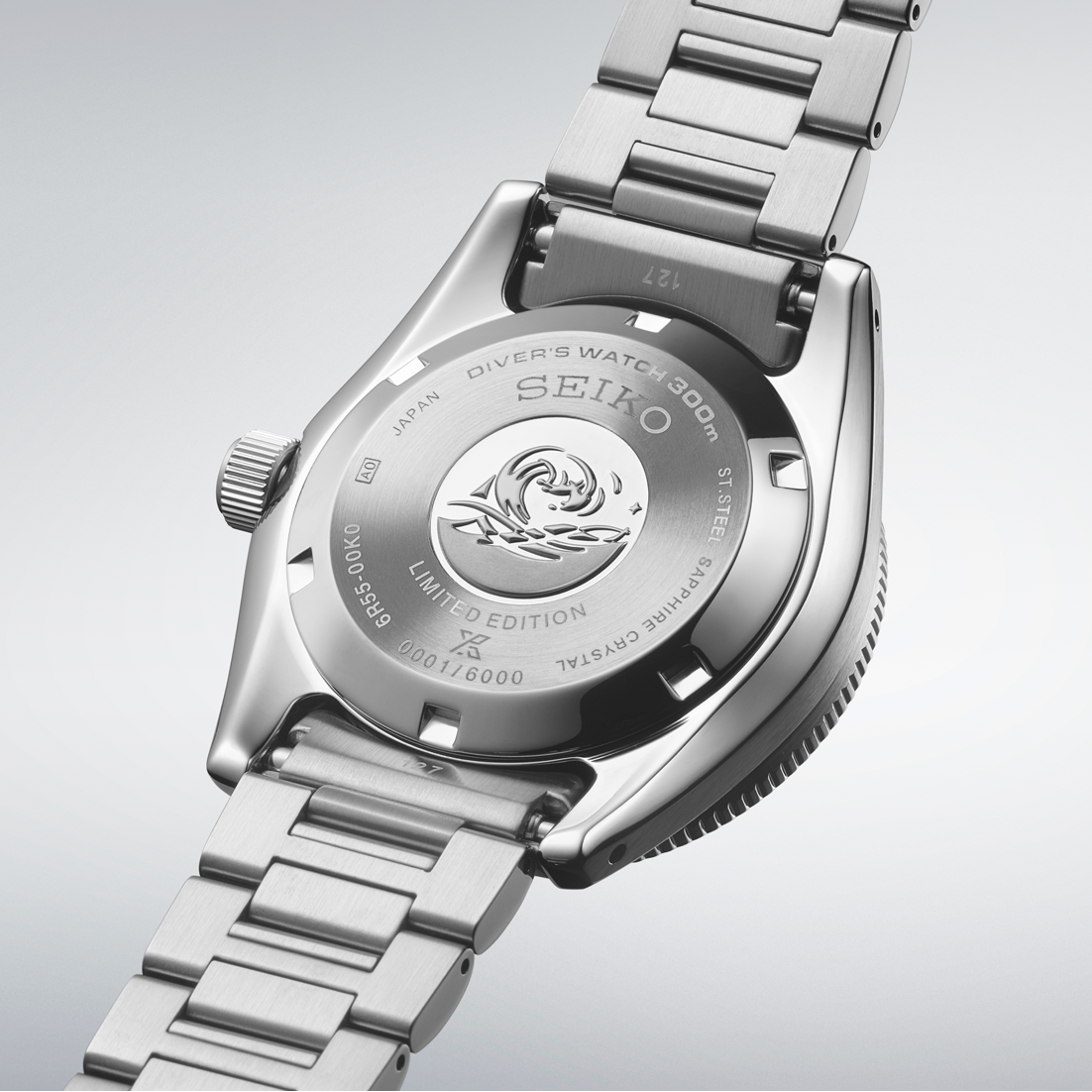 De golfmarkering, een symbool van het Seiko duikershorloge, is een bewijs van hoge betrouwbaarheid en uitzonderlijke technologie. Dit merkteken is gegraveerd op de achterkant van de kast van alle Seiko duikershorloges.