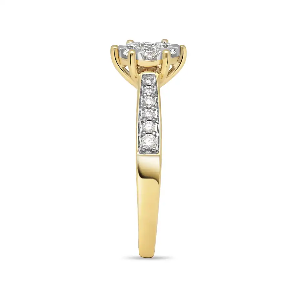 Cluster Solitair Ring met Zijstenen 18 - 0.18 Crt / 6 - 0.23Crt /1 - 0.09 Crt