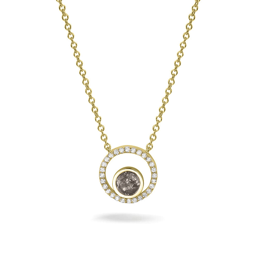 Hanger met rond ascompartimentje, inclusief collier. Het collier is 42 + 3 cm. Dat betekent dat er een jasseron verlengstukje aan zit van 3 cm zodat u het hangertje kort kunt dragen of op 45 cm.