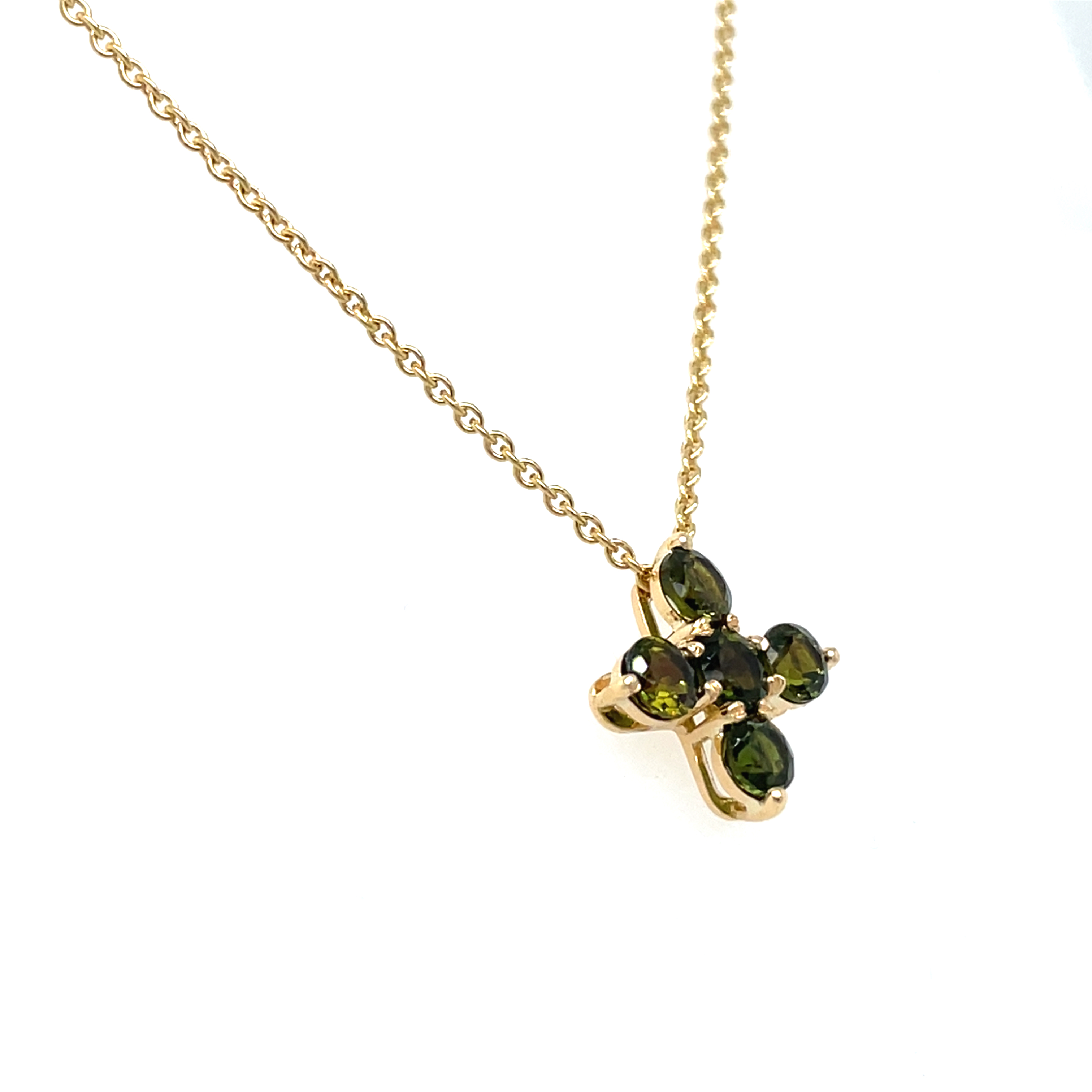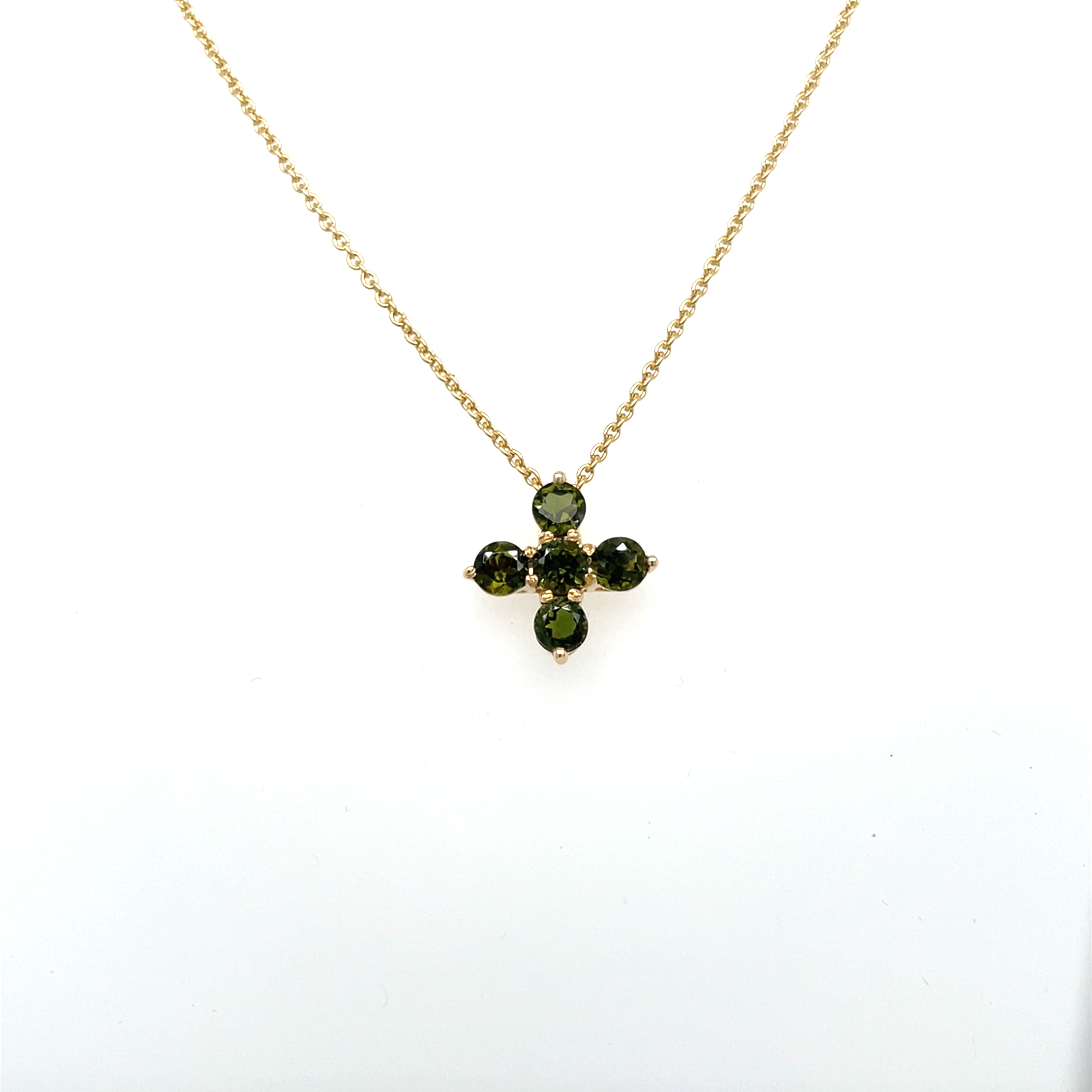 R&C Romance collier Cross bezet met 5x een groene toermalijn