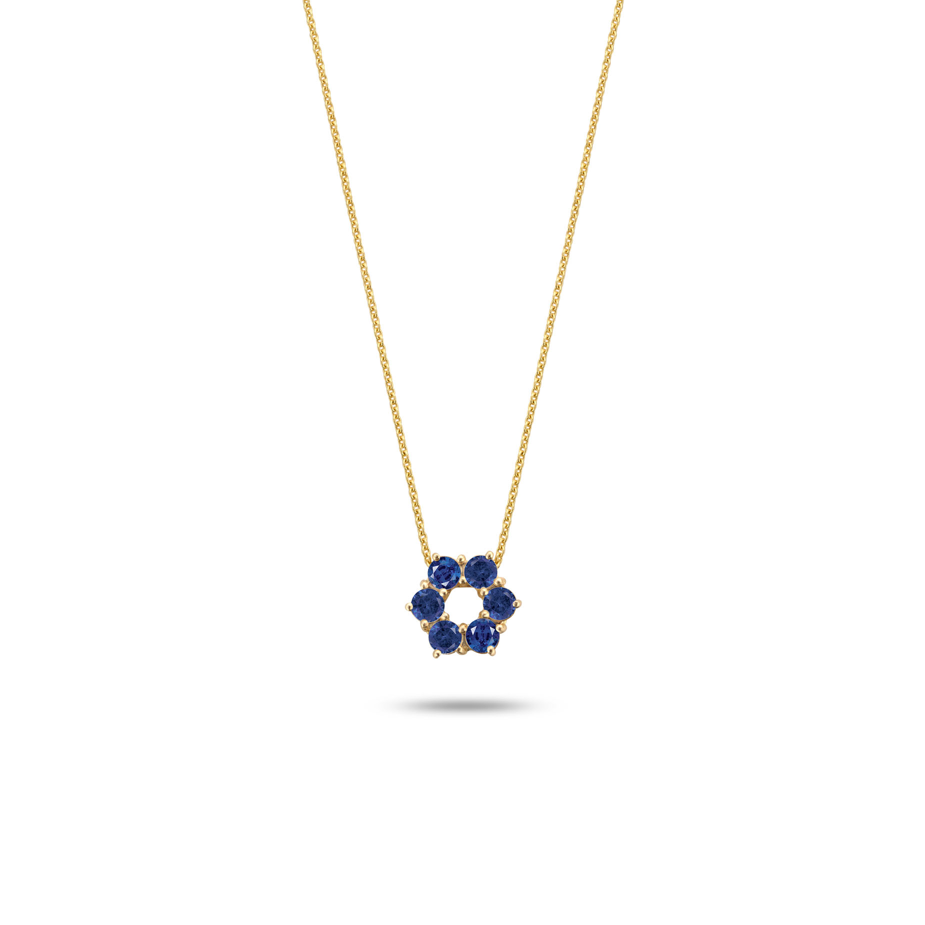 model Star bezet met 6 x natuurlijke blauwe saffier in geel goud 18krt