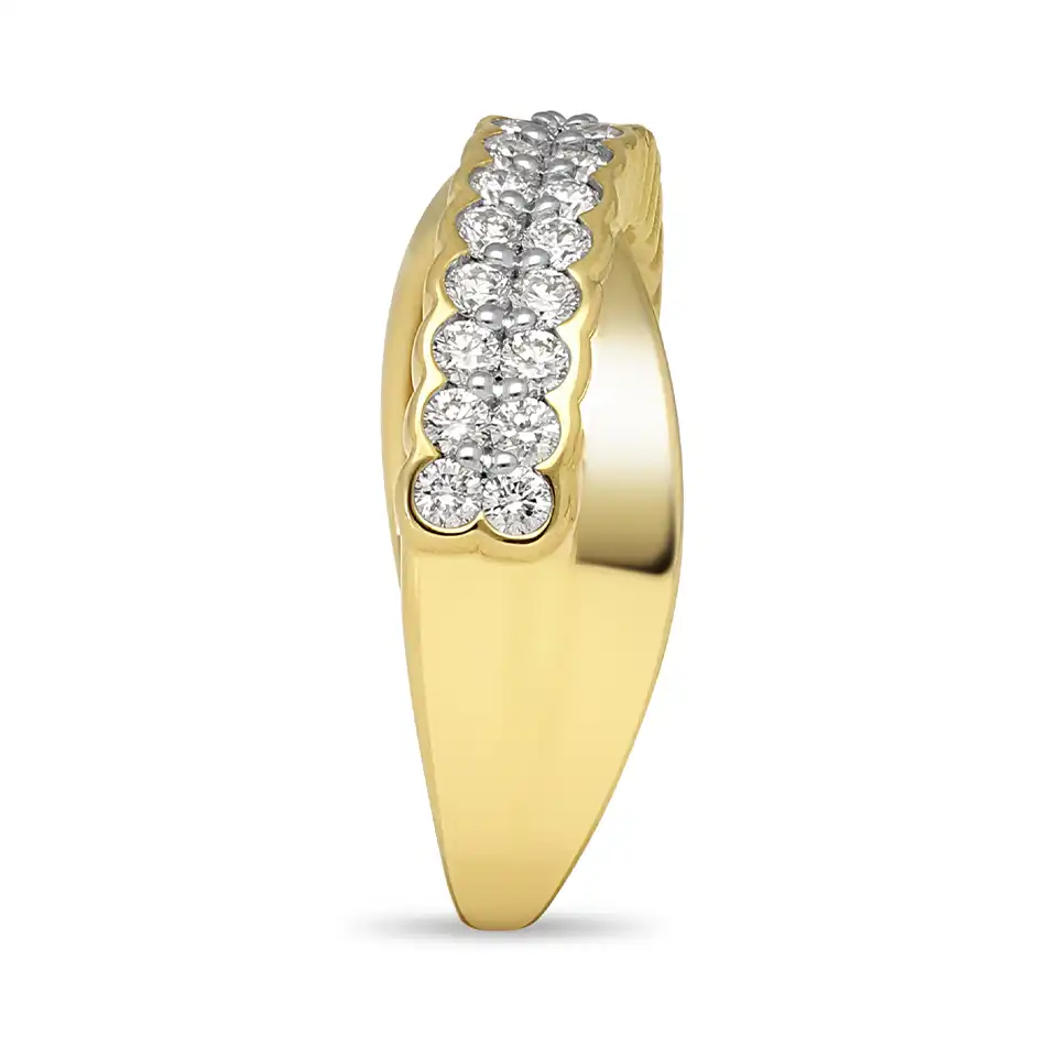 Crossover ring van 14krts geelgoud met 30 natuurlijke diamanten,