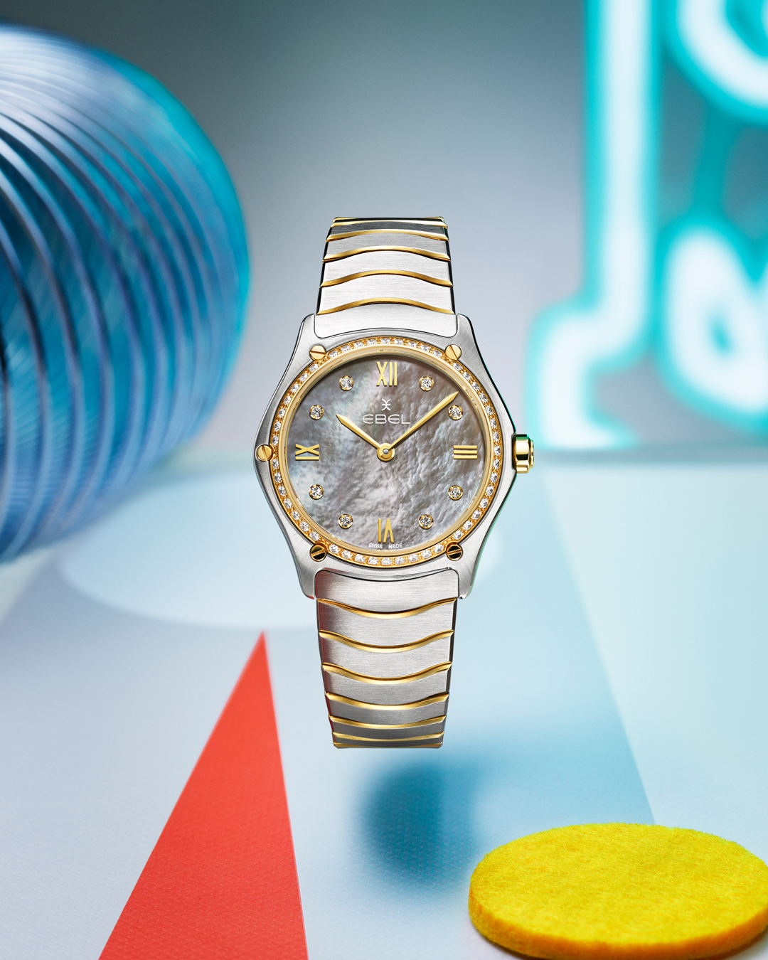 Het Sport Classic dameshorloge van Ebel is een klassiek model. Het horloge heeft een Zwitsers quartz uurwerk dat geplaatst is in een edelstalen kast afgedekt met een 18Krt gouden lunette bezet 47 diamanten. De diameter van de kast is 29 mm. ook de parelmoer wijzerplaat heeft diamanten uur markeringen. Aan de kast zit de bekende EBEL wave schakelarmband.