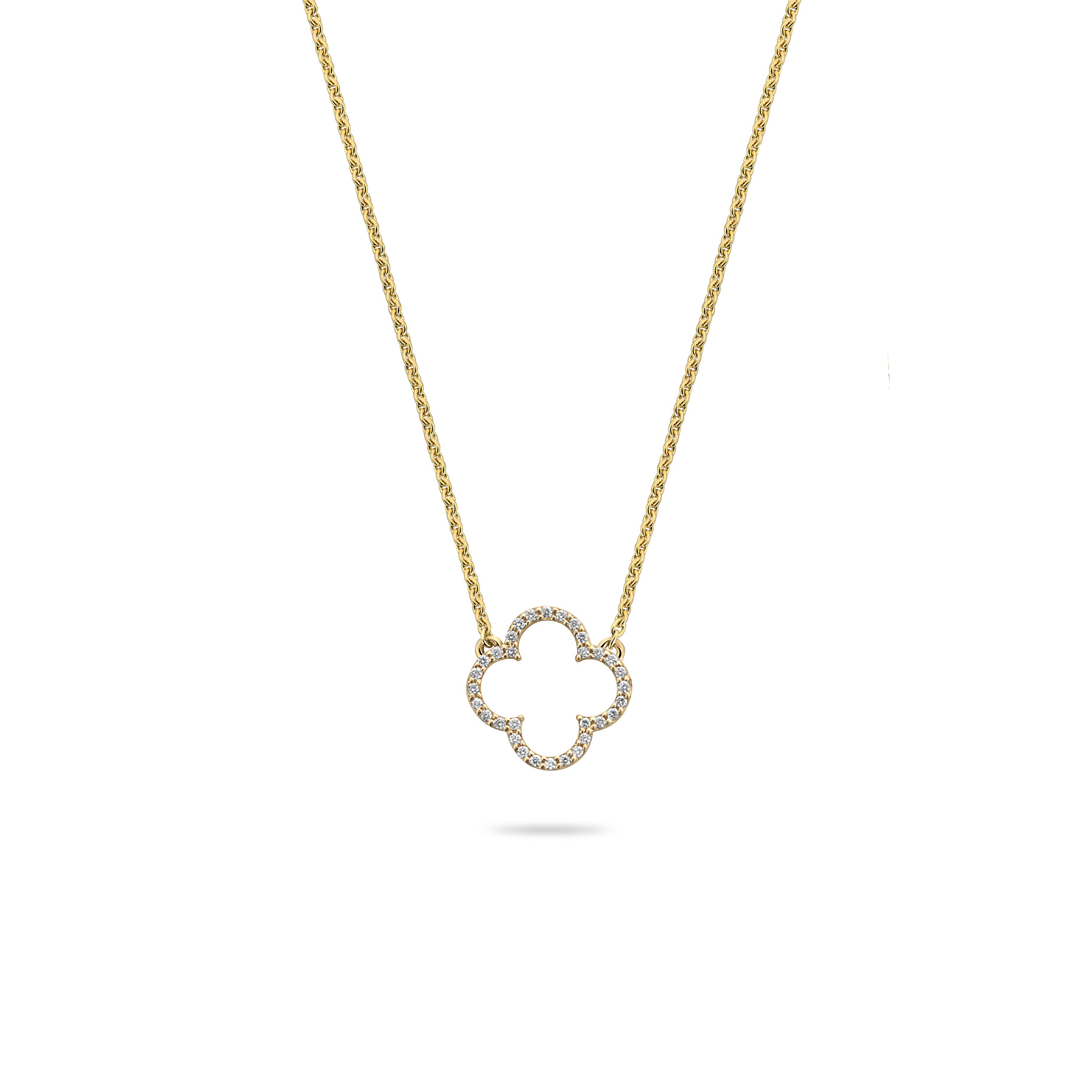 De vier blaadjes van een klavertje staan symbool voor de perfecte eenheid. Ze staan voor voorspoed, vertrouwen, liefde en natuurlijk, voor geluk. Onze Fortuna klaver is prachtig pavé gezet met 32 diamantjes, totaal 0.16crt. Leverbare goudkleuren: 14kts geel, wit en roségoud. Alle Miss Spring sieraden worden handgemaakt van verantwoord, eerlijk en 100% gerecycled goud.