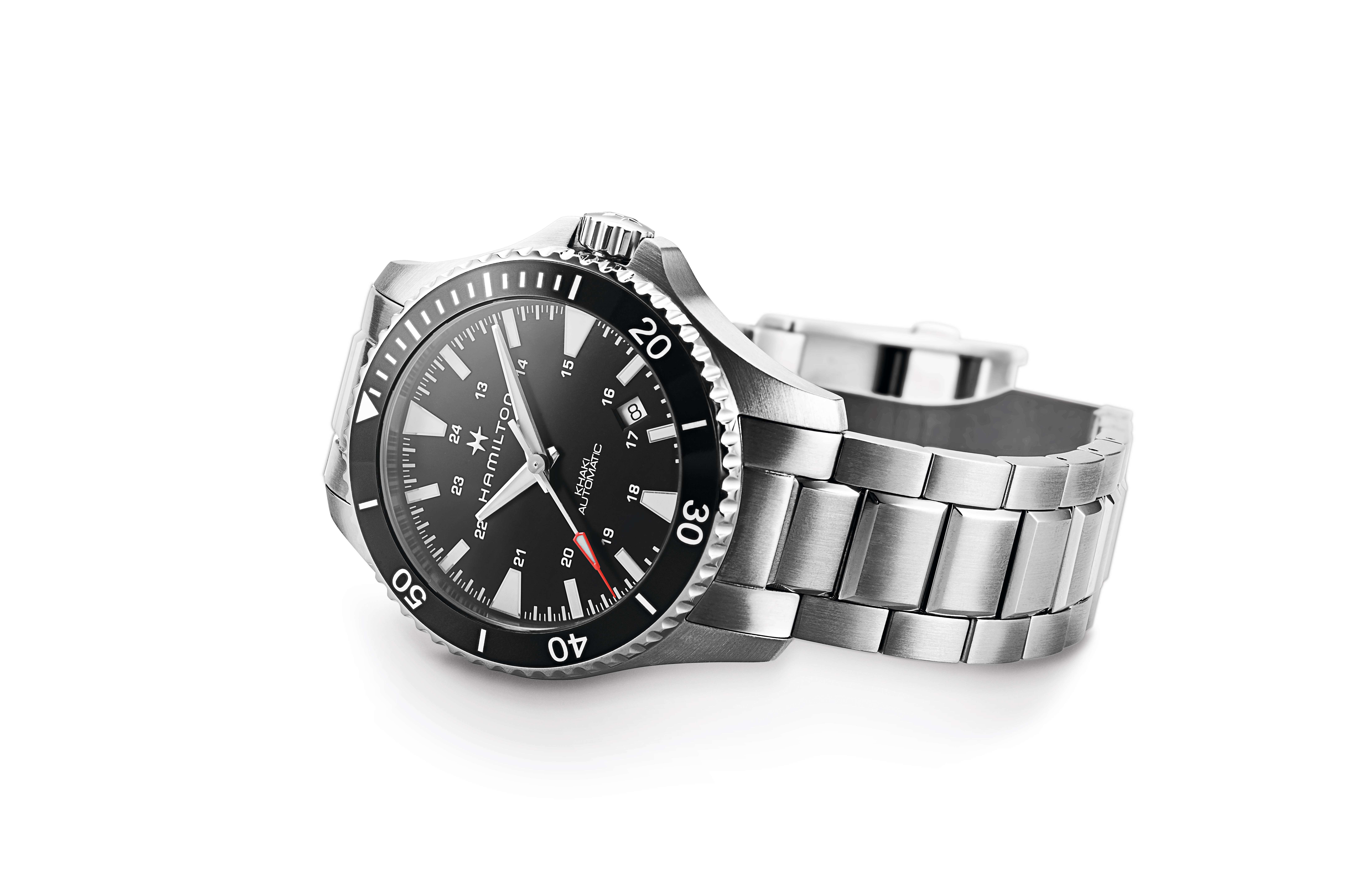 Spetterend! De Khaki Navy Scuba is net zo geschikt voor zomerdagen op zee als voor een dag op kantoor, en biedt prestaties en precisie in drie kleurencombinaties. Opvallend, leuk en klaar om in te duiken, dit horloge voelt zich al even thuis in, op of onder het water.
