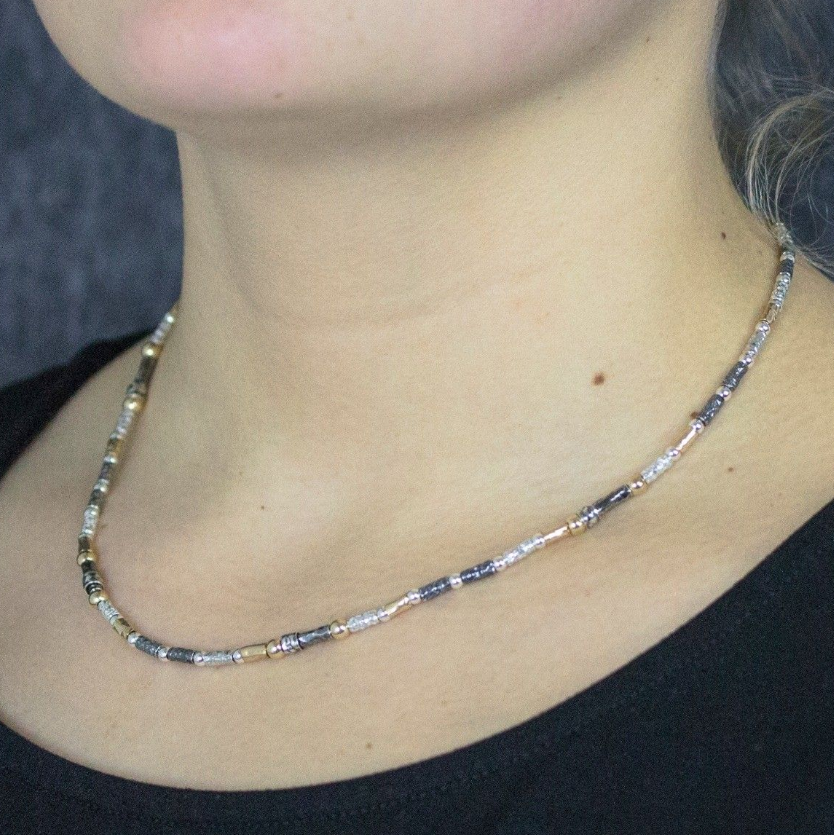 Prachtig zilver met goldfilled collier van Jéh Jewels, Nederlands ontwerp