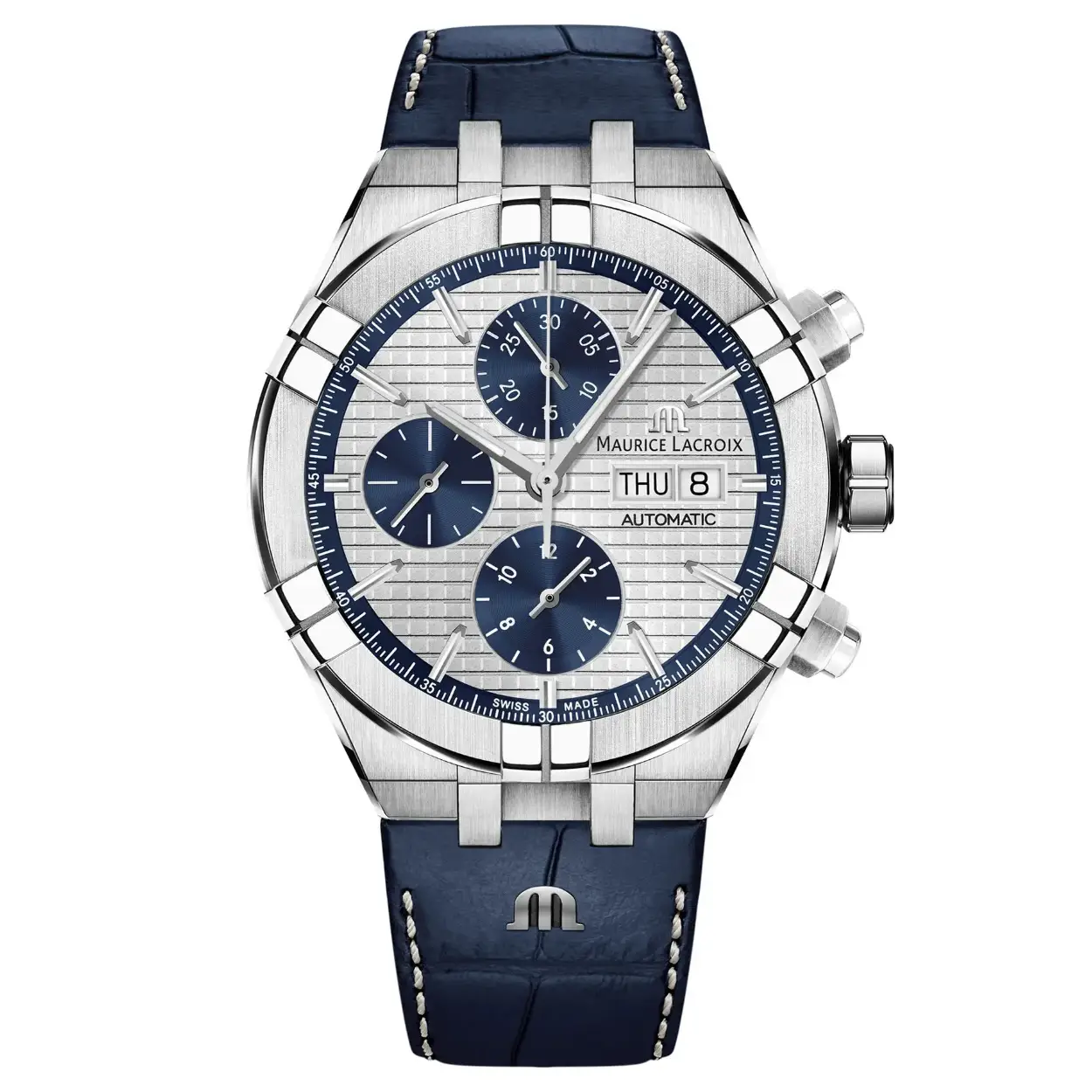 Het horloge wordt geleverd met een blauwe kalfsleren wisselband. Deze heeft een stalen vouwsluiting.. De banden kunt u zelf thuis eenvoudig verwisselen.