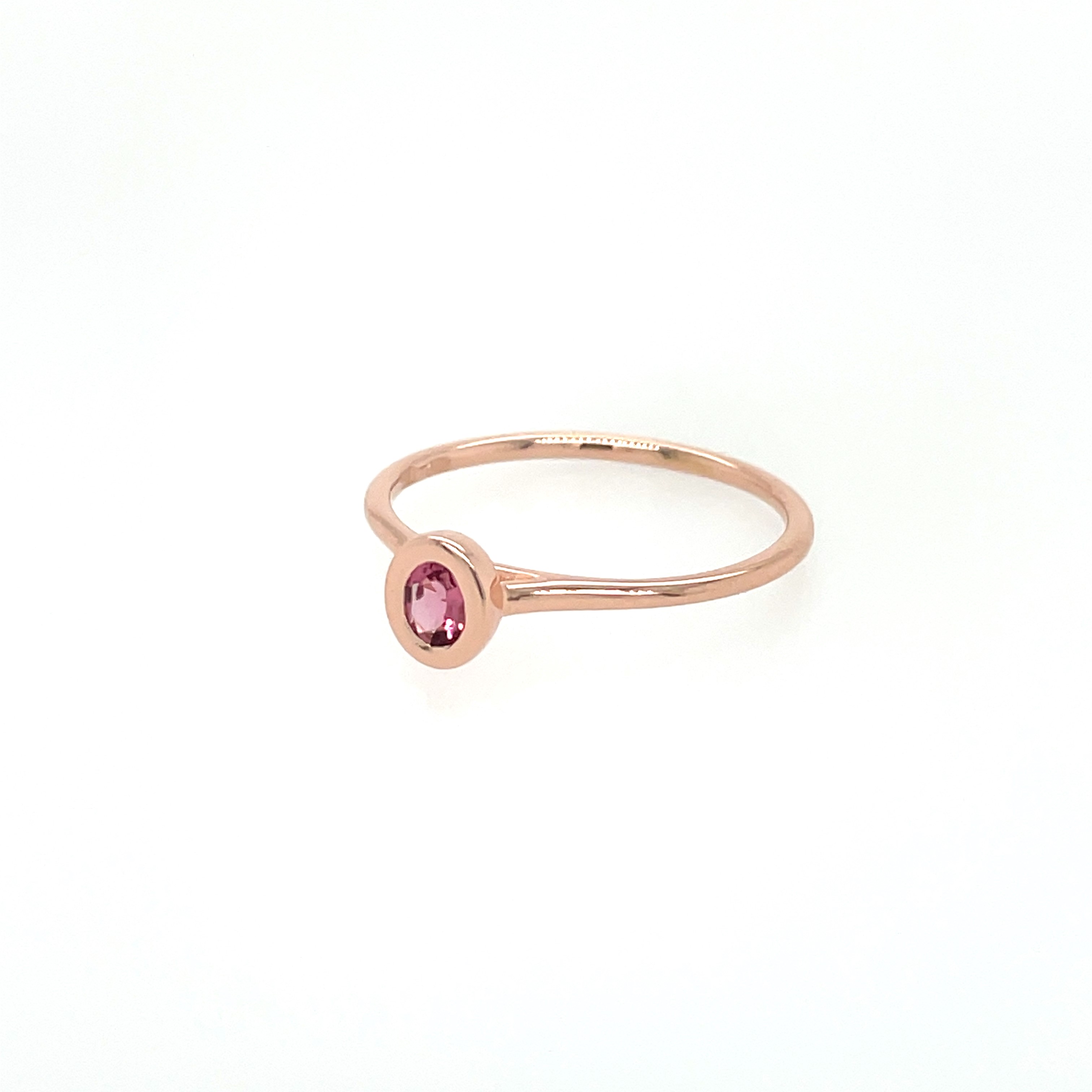 Ring Brilliantly Bezel Ovaal14kts rosé goud met roze toermalijn