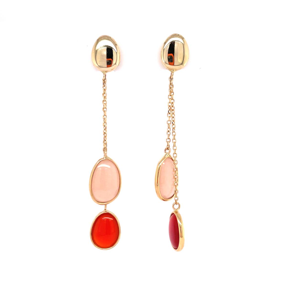 14 karaat geelgouden oorhangers met maansteen en rood agaat.