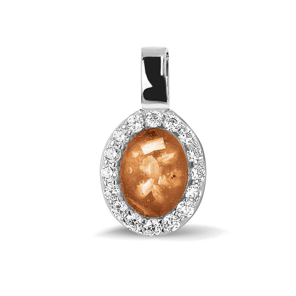 Dit sieraad wordt zichtbaar aan de voorkant gevuld  met as of haar, en wordt vermengd met onze speciale hars.