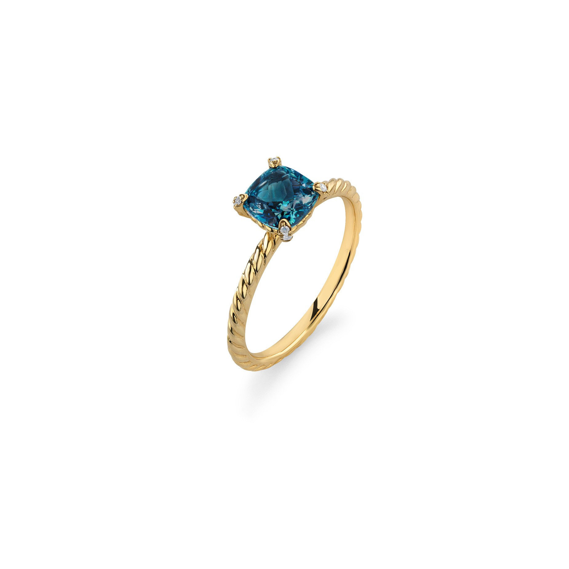 Ring Embrace is een fijne elegante solitair waarbij de Cushion shape middensteen vastgehouden wordt door 4 fijne pootjes met 2 diamantjes in iedere poot. De twist band maakt deze ring extra speels.