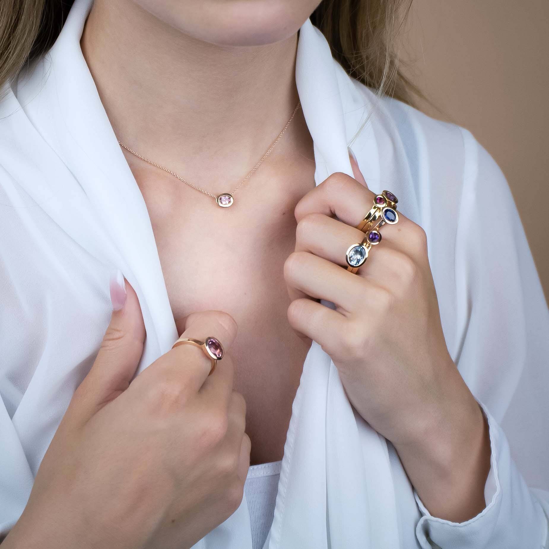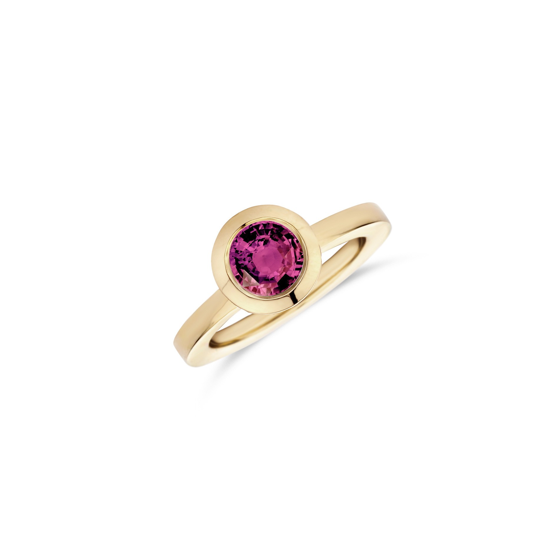 Ring Panama met een ronde toermalijn in een strakke Bezel zetting. Panama is perfect om ringen tegenaan te dragen. Verkrijgbaar met een middensteen 5mm