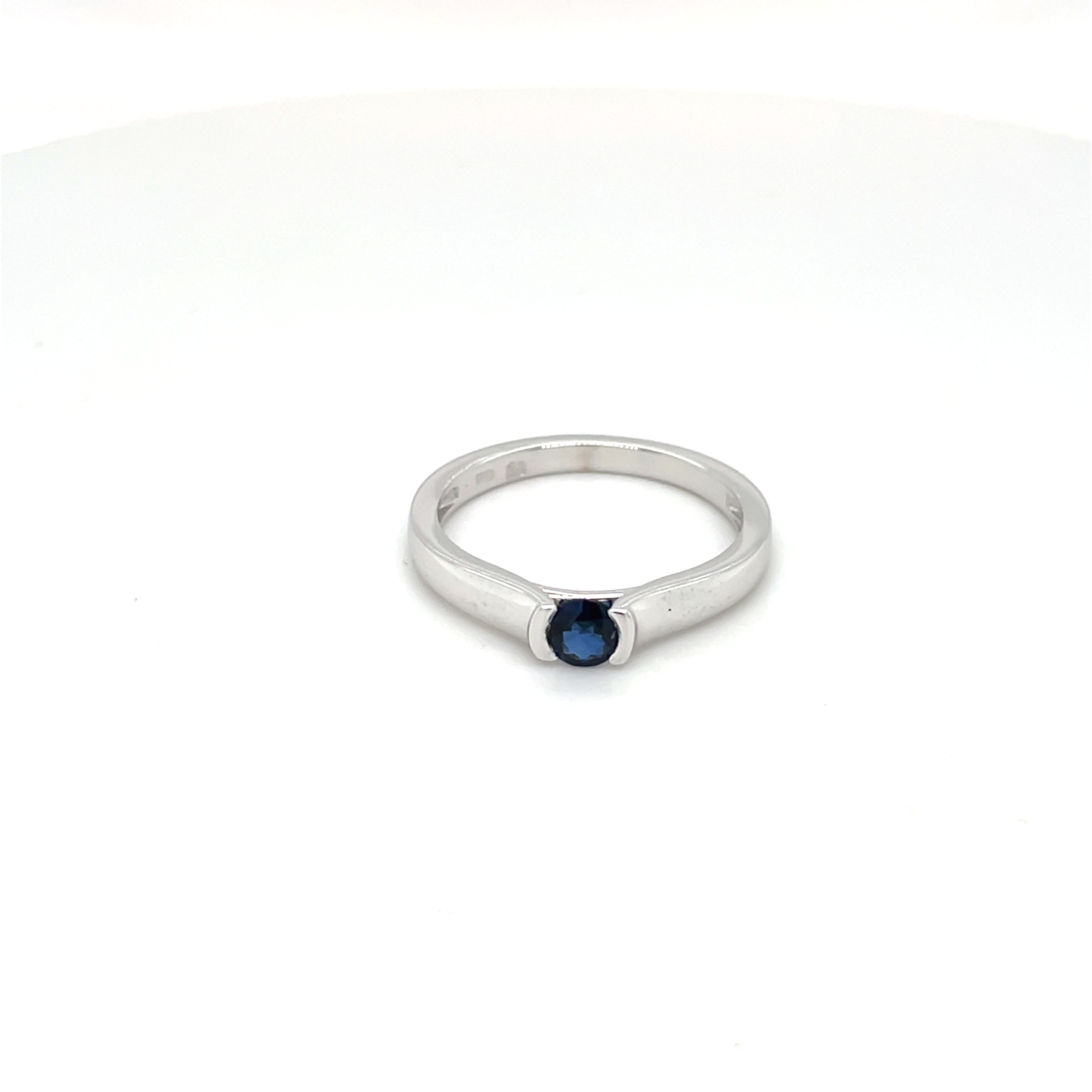 een korenbloemblauwe saffier gezet in een tulpvormige zetting