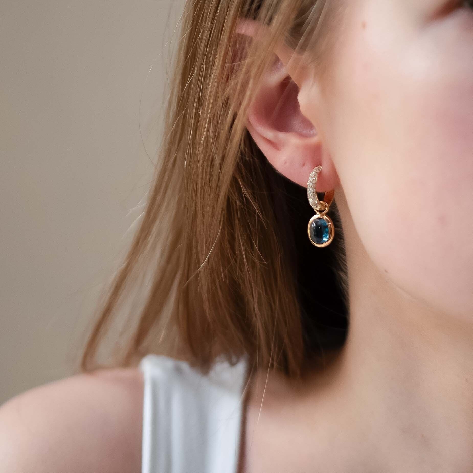 Romance oorhanger York model 4222, gezet met 2x oranje maansteen cabochon ovaal geslepen 9x7mm