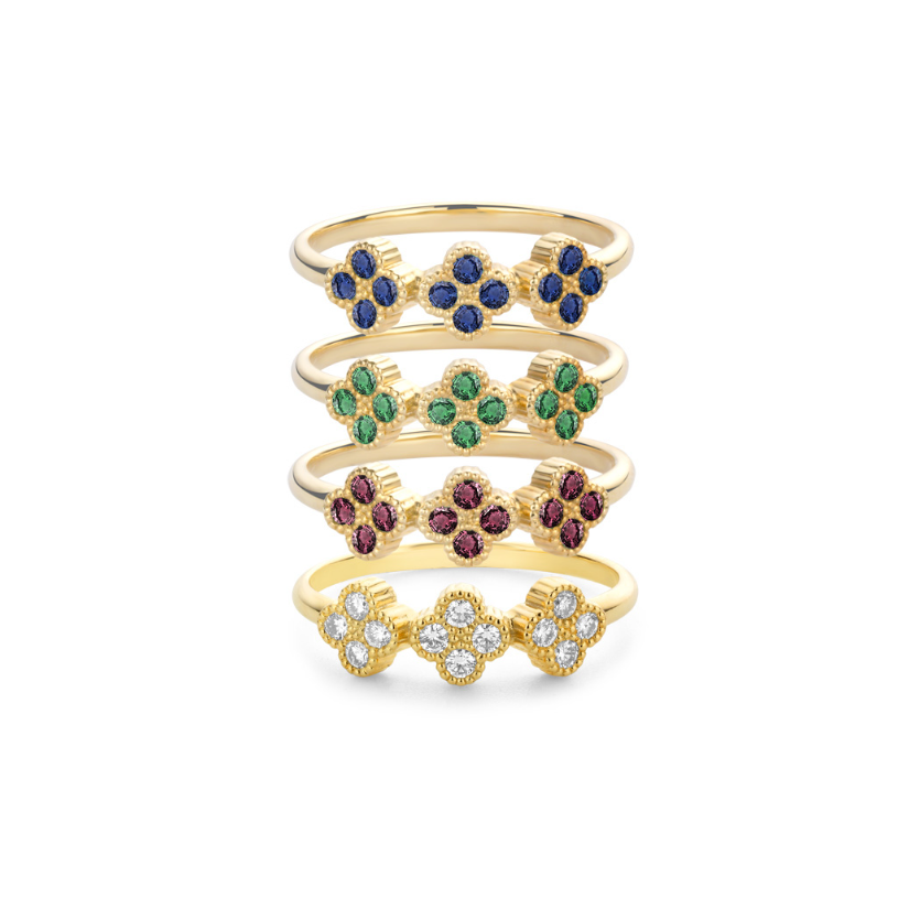De Primrose is een van de eerste bloeiende bloemetjes in de lente, ze staat voor vernieuwing en optimisme. Ring Primrose 3 flower is hier uitgevoerd met 12 diamantjes en totaal 0.24crt. Ze is ook verkrijgbaar met 5 verschillende edelstenen. Naast een ring is de Primrose ook verkrijgbaar als hanger, armband, oorknopje en 'n oorbedel. Leverbare goudkleuren: 14kts geel, wit en roségoud. Alle Miss Spring sieraden worden handgemaakt van verantwoord, eerlijk en 100% gerecycled goud.