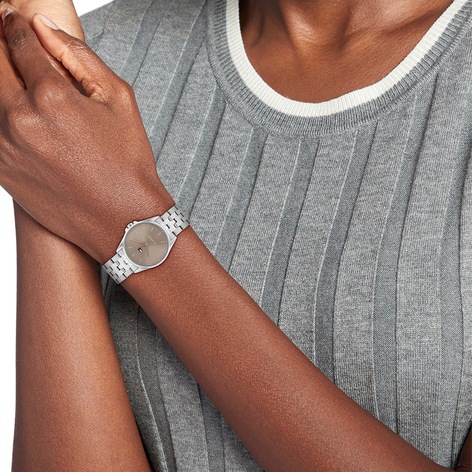Sinds de lancering van het merk in 1985 is Tommy Hilfiger wereldwijd bekend geworden als pionier van de klassieke Amerikaanse coole stijl. Geïnspireerd door de iconische popcultuur en het Amerikaanse erfgoed. De dames en herencollectie van dit seizoen bestaan uit minimalistische silhouetten en rustieke lederen details. De herenhorlogecollectie biedt iconische uurwerken met roestvrijstalen, lederen en siliconen banden.